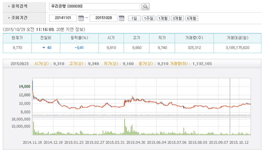 문제는 우리은행 주가가 지난 6월26일 이후 1만원대를 넘지 못하고 있다는 점이다. 향후에도 주가가 반등하기 어렵다는 전망도 나온다.