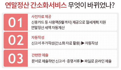 3일 정부는 ‘연말정산 미리보기’ 서비스를 도입하는 등 연말정산 시스템을 대대적으로 개편하기로 했다.