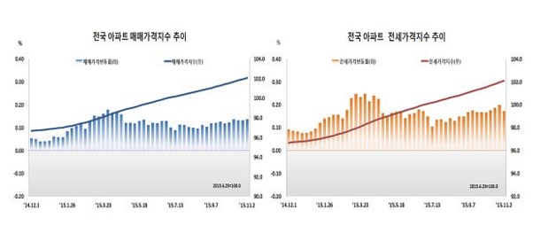 한국감정원은 이달 2일 기준 전국의 아파트 매매 가격은 지난주보다 평균 0.14% 올랐다고 5일 밝혔다.