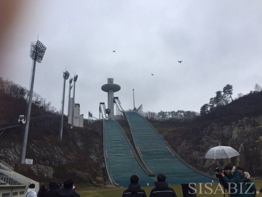 KT가 24일 ‘드론 LTE’ 등 재난 발생 시 구조를 위해 통신을 연결하는 다양한 솔루션을 선보였다. KT 관계자들은 이 기술을 상품화해 세계 시장에 내놓을 계획도 설명했다. 이날 행사는 도심에서 드론을 띄울 수 없는 규정 탓에 강원도 평창 알펜시아 스키점프 센터에서 열렸다.