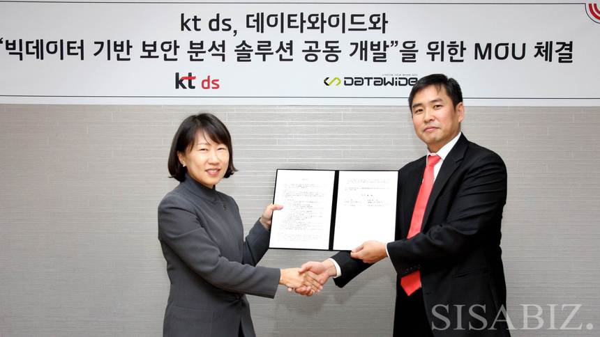 KT DS는 국내 보안 전문기업 데이타와이드와 양해각서를 체결하고 빅데이터 기반의 보안 분석 솔루션을 공동 개발한다고 25일 밝혔다.