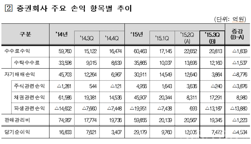 수탁수수료, 자기매매이익, 판관비 모두 감소