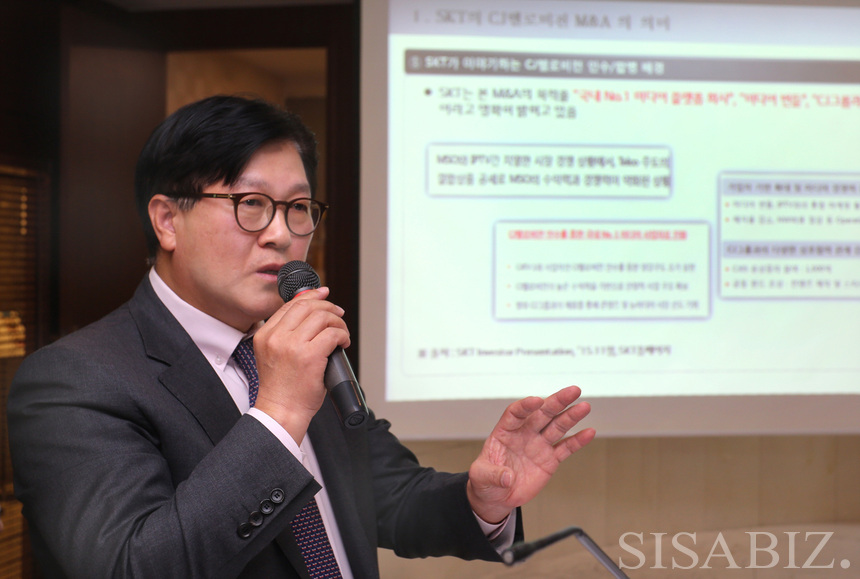 박형일 상무는 이에 대해 “SK가 이동통신 시장을 지배하듯 방송시장을 독점화하는 것을 예방하고 경쟁을 활성화하려면 인수합병을 불허해야 한다”고 설명했다.