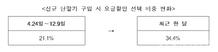올해 4월 24일부터 통신 요금 할인율이 12%에서 20%로 높아진 이후 보조금 대신 요금할인을 선택하는 가입자가 크게 늘고 있기 때문이다.