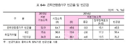 은퇴연령층가구 빈곤율 49.6%..중위소득 50% 못미쳐