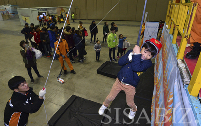 지난 11월 26일 국민안전처 주관으로 경기 고양시 일산 킨텍스에서 열린 안전산업박람회에서 어린이들이 완강기를 이용한 대피 훈련을 하고 있다. / 사진=뉴스1