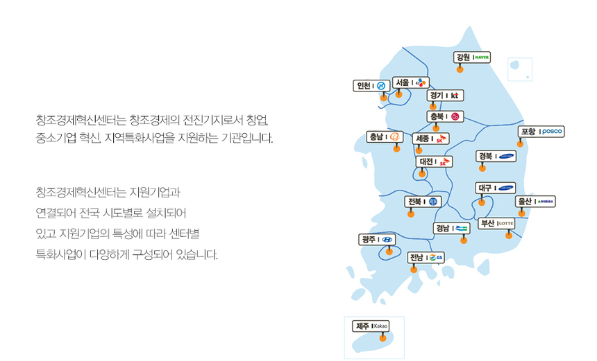 전국에 분포한 창조경제혁신센터 소개. / 그림=창조경제혁신센터 홈페이지