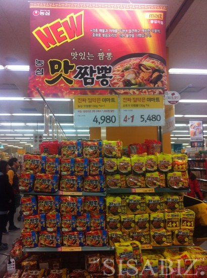 최근 짬뽕전쟁에서는 농심이 크게 달라진 모습이다. 대형마트에서 진행되는 맛짬뽕의 판촉 방식부터 눈에 띈다. 1위 업체의 자존심을 내려놓고 2위 업체 바로 옆에서 가격경쟁력으로 승부하는 모습이다.