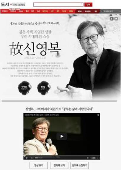 또 인터파크도서 DB에 있는 故신영복 선생 인터뷰 및 북콘서트 후기 등을 통해 선생의 삶과 철학, 마지막 발자취를 확인할 수 있다. 그의 가르침이 담긴 대표 도서 소개, 신영복 선생 추모글을 남길 수 있는 공간도 마련했다.