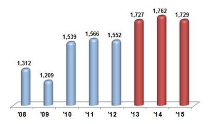 수출은 2012년 이후 3년만에 다시 감소세로 돌아섰다. 같은 기간 무역수지 흑자 규모도 2년 연속 감소한 것으로 조사됐다. 세계 ICT 성장률 5.8% 감소 등 대외적인 환경에 따른 것으로 분석됐다.