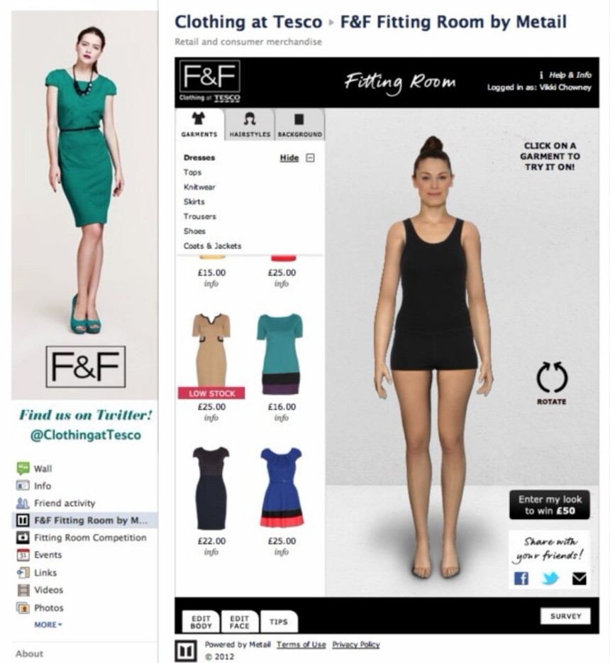 미국에선 아바타에 옷을 착용하는 모습을 재현하는 쇼핑몰이 운영되고 있다. 온라인 의류쇼핑업체 메테일(Metail)은 자기 사이즈와 체형이 같은 아바타에 옷을 입혀보는 서비스를 제공하고 있다. 이 서비스를 이용하면 게임하듯 옷을 입히는 재미를 느낄 수 있다. 또 실제 착용 시 느낌도 가늠할 수 있다.