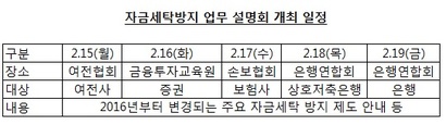 최성일 금감원 감독총괄국장은 "조세포탈, 비자금 형성 등 자금세탁 해위를 근절하기 위해 올해부터 자금세탁방지 제도가 강화된다"며 "변경된 제도가 금융현장에서 원활하게 정착되도록 할 것"이라고 말했다.