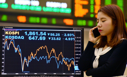 코스닥 지수 장중 8%넘게 폭락