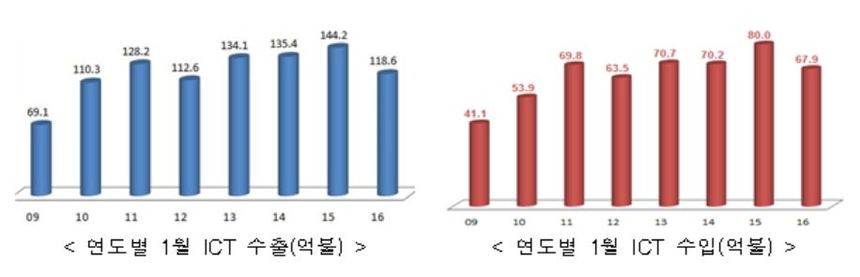 ICT 무역수지는 반도체, 휴대폰, 디스플레이 등 주력품목의 흑자로 50억7000만 달러를 기록했다. 전체 수지(53억3000만 달러)의 95.1% 수준이다. 중국이 39억2000만 달러로, 최대 흑자를 나타냈다. EU(3억1000만 달러), 미국(5억5000만 달러) 등 선진국에서는 흑자를 지속했다. 반면 일본은 4억 달러 적자를 기록했다.