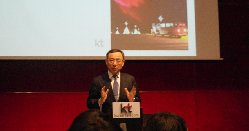 그는 “KT는 사명이 코리아 텔레콤(Korea Telecom)이고 정부 통신 부처로 출발하다보니 세계적 기업의 임원들을 만나는 데 이점이 있다”면서 “해외 사업진출에 성공해 국민 기업으로서 한국 중소기업이나 벤처가 함께 성장할 수 있도록 돕겠다”고 말했다.