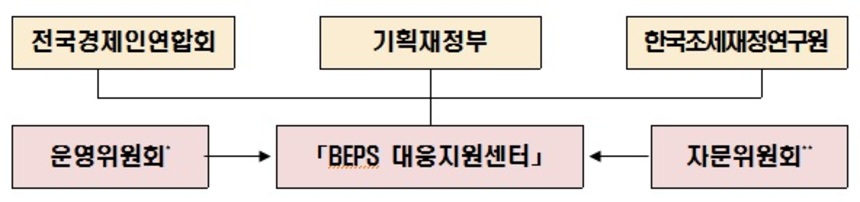 운영위원회는 기재부, 전경련, 조세연, 실무책임자 및 기재부가 위촉한 전문가로 구성된다. 분기 1회 이상 개최하며, 연간∙분기별 활동계획과 구체적 기업지원방안에 대한 논의를 하게 된다. 자문위원회는 센터 운영에 필요한 전문적 자문 제공을 위해 기재부가 위촉한 10인 이내의 회계법인, 로펌 등 BEPS 전문가들로 꾸려진다.