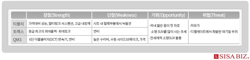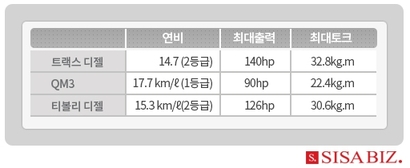 ◇연비 강자 QM3, 힘 센 트랙스, 가격대비 성능 좋은 티볼리