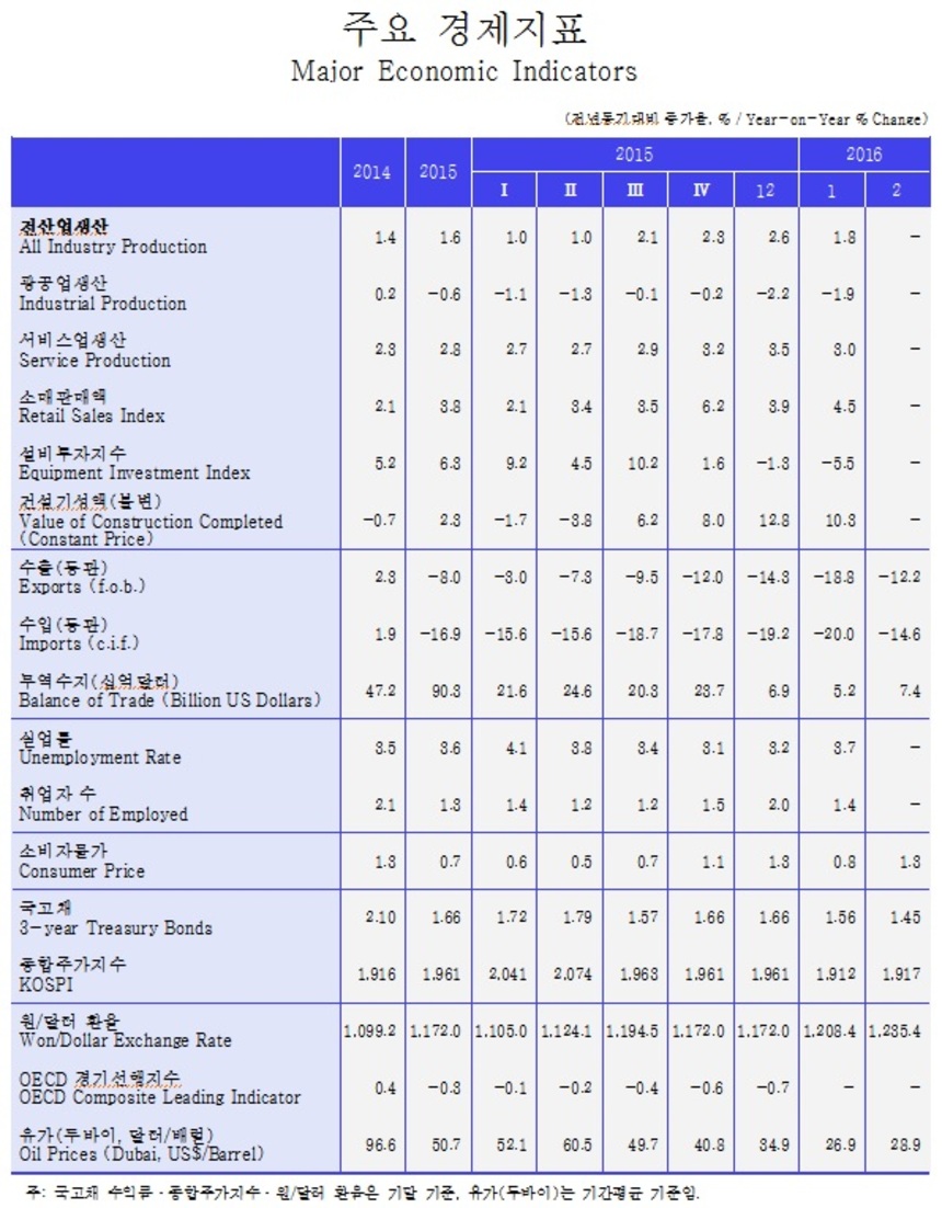 KDI는 국내 금융시장이 대외 불확실성 확대로 원화가치가 하락하고 주식시장 변동성도 증가하는 등 불안한 모습을 보이고 있다고 판단했다. 세계경제는 신흥국을 중심으로 성장세가 둔화되는 가운데, 미국 금리인상, 브렉시트(영국의 유럽연합 탈퇴) 우려, 저유가 지속 등 하방위험도 여전히 높은 것으로 진단했다. 다만 이런 불안요인에도 불구 국내 경제의 대외 건전성은 양호하다고 평가했다.