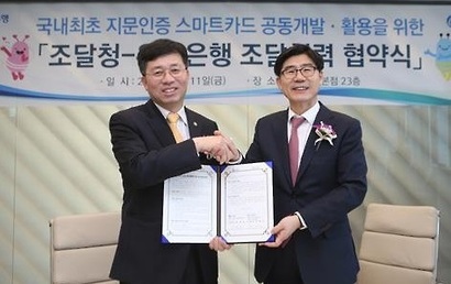 우리은행이 조달청과 업무협약을 맺고 지문인증 스마트카드를 활용한 모바일 전자입찰 사업을 공동개발하기로 했다고 13일 밝혔다.