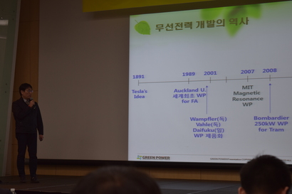 그는 “무선충전은 먼 미래가 아니다. 현재 무선충전이 상용화되고 있다. 현대자동차 울산 공장에도 설치돼 있다. 공장 바닥에 레일을 깔아 AGB를 코드 없이 무선으로 충전하는 방식으로 주행 중 충전하는 방식이다”고 설명했다.