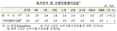 지난 1년간 소비자물가상승률에 대한 인식과 향후 1년간 기대인플레이션율은 각각 2.5%로 나타났다. 향후 1년간 소비자물가 상승에 영향을 미칠 주요 품목으로는 공공요금(56.6%), 집세(45.7%), 공업제품(33.4%) 순으로 조사됐다.