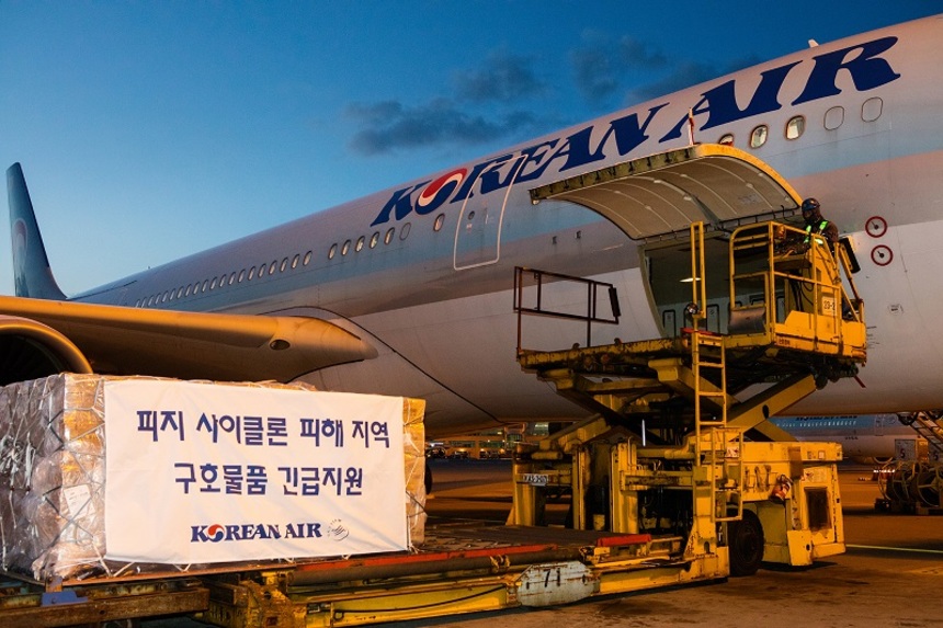 대한항공이 사이클론으로 피해를 입은 남태평양 피지 이재민을 위해 구호 물품 무상 수송에 나섰다.