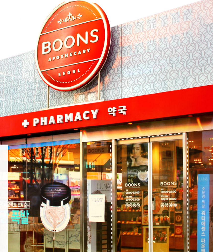 관광객이 많이 오가는 고속터미널점과 명동점은 분스 매장 안에 상비약부터 처방전이 필요한 전문의약품까지 판매하는 약국이 입점해 있다. 전문 약사가 상담부터 제조까지 약국 서비스를 제공한다.