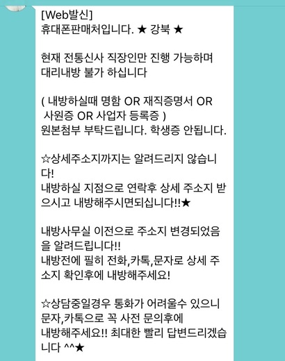 그러나 실제 연락처로 연락을 해본 결과는 달랐다. 해당 광고는 페이백 제공 판매점 광고였던 것이다. 영업은 기록이 남는 문자나 녹음이 가능한 통화로 이뤄지지 않았다. 구입을 원하는 손님이 직접 숨겨진 영업점을 찾아 상담을 받아야 했다. 상담은 현장에서만 이뤄졌다.