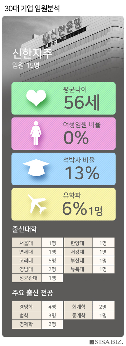 ‘학사 학위뿐인 순수 토종 56세 남성.’ 시가총액 12위 기업이자 국내 최고 금융그룹 소속 신한금융지주 임원의 전형이다.