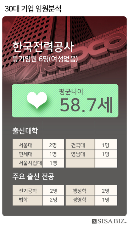 ‘서울대 졸업한 50대 후반 남성 직장인.’ 국내 시가총액 2위 기업 한국전력공사 임원은 대한민국 임원 평균과 유사했다.