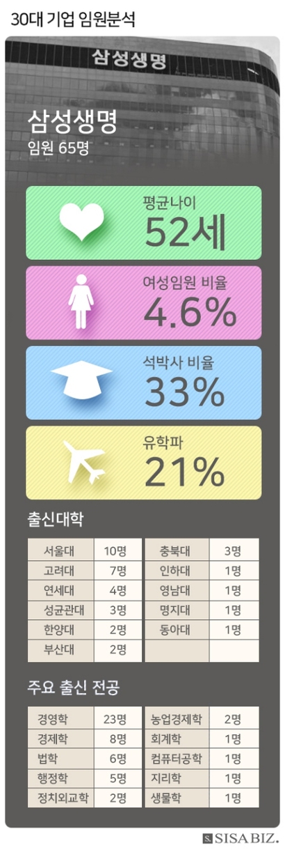 '서울대에서 경영학을 전공한 52세 남성.' 시가총액 6위 업체 삼성생명 임원의 전형적인 모습이다.