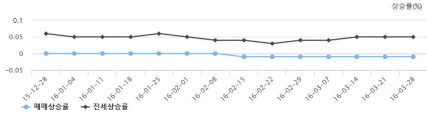 지방은 제주, 전남, 광주가 각각 0.10%, 0.08% 0.07% 씩 올랐지만 경북 충남, 대구 등이 하락하면서 전체적으로 0.01% 떨어졌다.