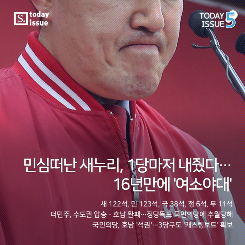 민심떠난 새누리, 1당마저 내줬다…16년만에 '여소야대' 저작권자 © 시사저널e 무단전재 및 재배포 금지 김재일 기자 kojell@sisabiz.com 페이스북 인스타그램 유튜브 이메일(으)로 기사보내기 다른 공유 찾기 기사스크랩하기 개의 댓글 회원로그인 댓글 내용입력 댓글 정렬 최신순 추천순 답글순 BEST댓글 BEST 댓글 답글과 추천수를 합산하여 자동으로 노출됩니다. 닫기 더보기 댓글삭제 삭제한 댓글은 다시 복구할 수 없습니다. 그래도 삭제하시겠습니까? 비밀번호 닫기 댓글수정 댓글 수정은 작성 후 1분내에만 가능합니다. 본문 / 400 비밀번호 닫기 내 댓글 모음 닫기